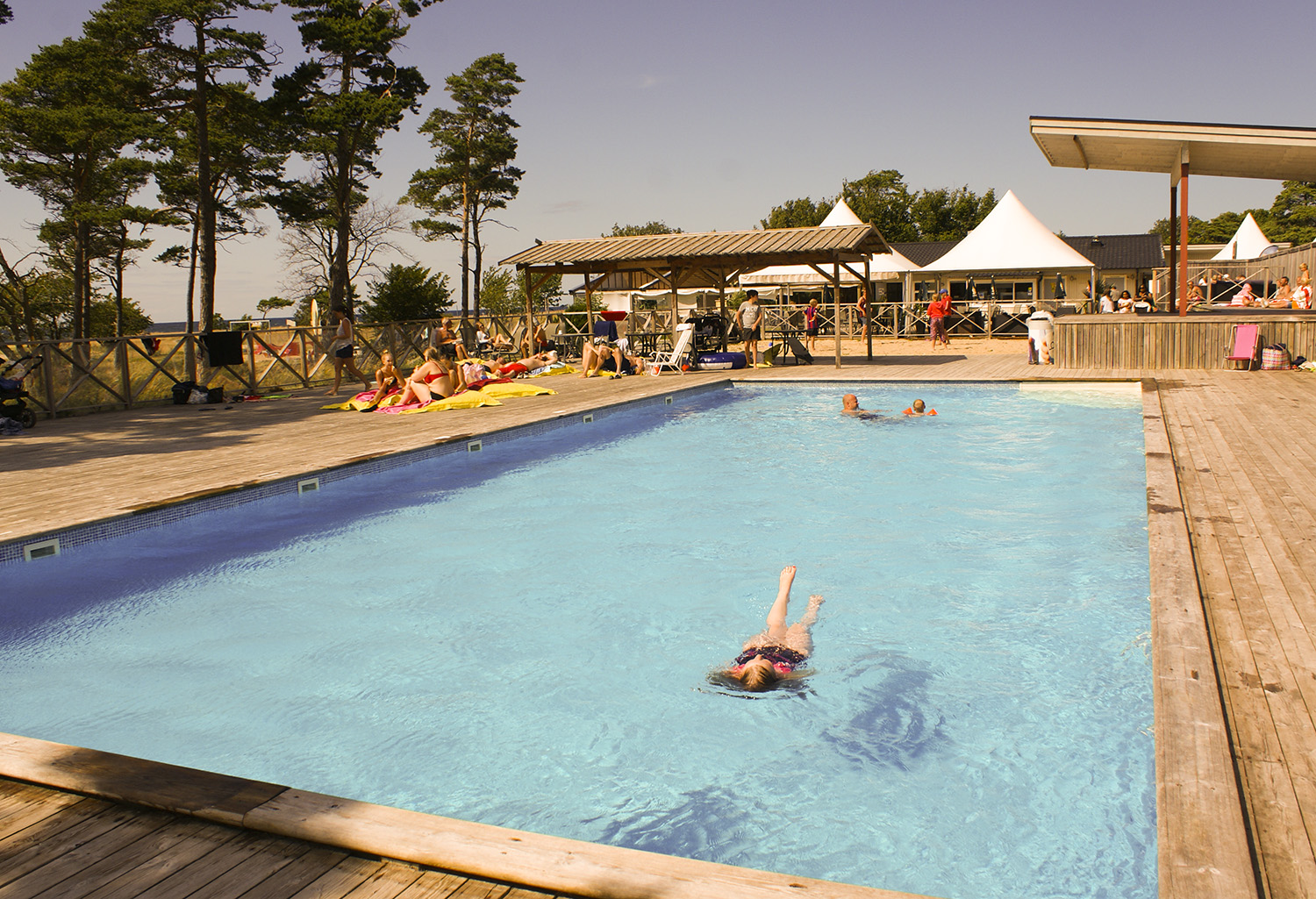 Restaurang Mango intill havet vid Snäck, 5 kilometer norr om Visby, har ett poolområde bestående av en större bassäng och en barnpool. Mango är öppen alla dagar från juni till augusti.